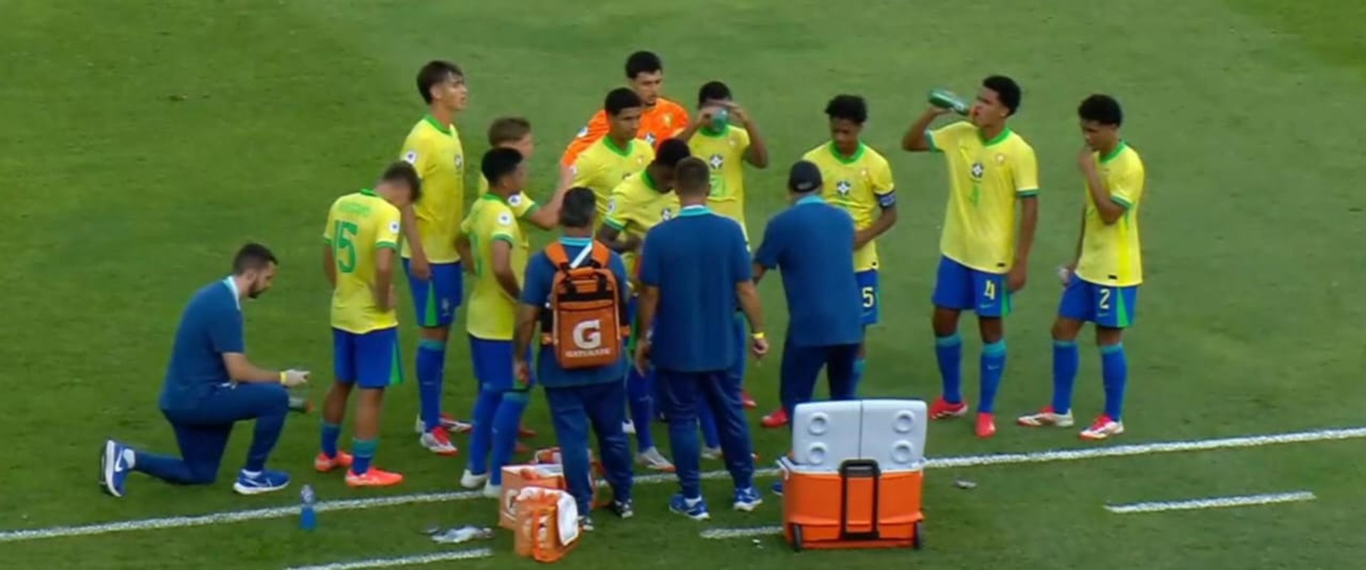 A marcação alta boliviana funcionava muito bem quando essa bola era rifada pela última linha da defesa brasileira, mas quando encontrou Wesley Natã ele conseguiu fazer um lançamento para Ruan Pablo tocar na saída do goleiro Filipinho e fazer o primeiro da partida e o seu segundo na competição.